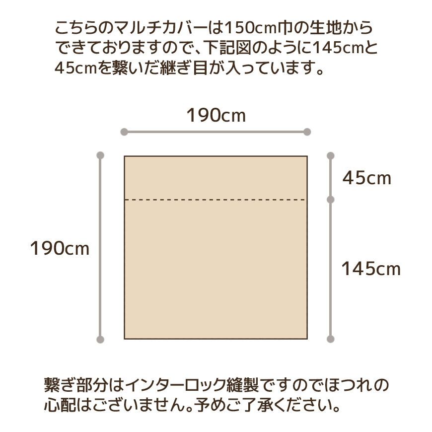 ※こちらのマルチカバーは150cm巾の生地からできておりますので45cmと145cmを繋いで縫製してございます。