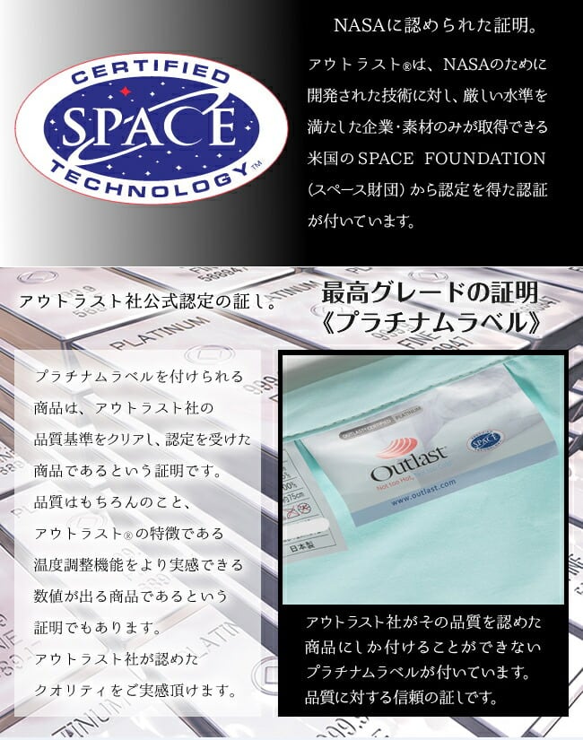 アウトラスト(R) プラチナム 敷パッド(ハーフ クイーン)75x160cm 1枚+ 枕パッド 45x60cm 2枚