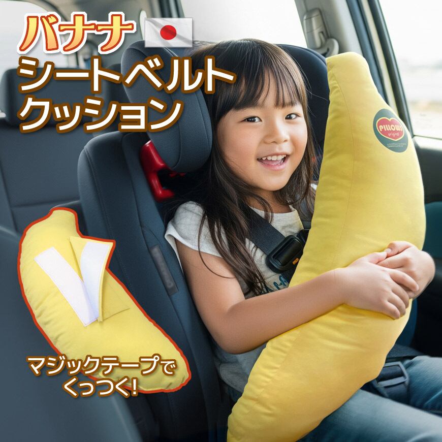 日本製 お車専用 シートベルトカバー クッション バナナ 抱き枕 マジックテープ式 ぬいぐるみ