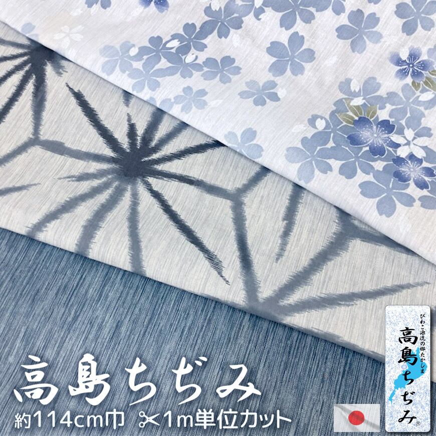 高島ちぢみ 生地カット販売 1m単位 無地 花柄 桜 麻の葉 納涼 日本製 送料無料