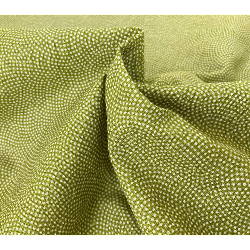 変化のある変わり織り生地にプリントで扇状の小紋柄が表現されています。